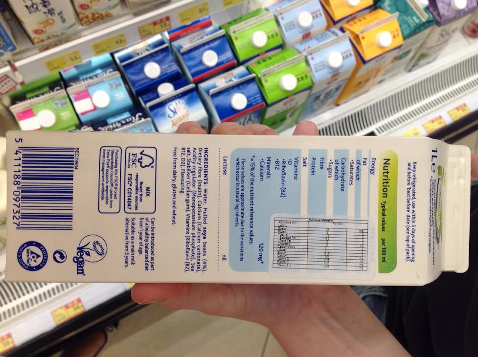 Unusefully clear: Soy milk container with “clarifying” nutritional information added by the HK government.