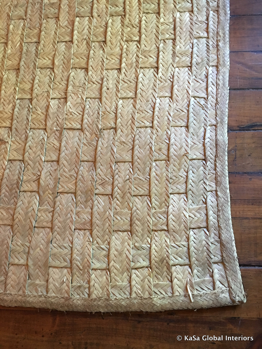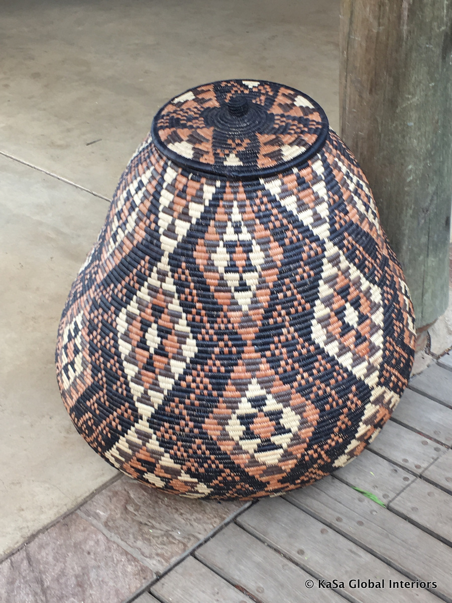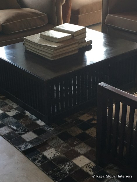 When designing a safari lodge, cowhides and zebra skins are the usual choice when it comes to rugs. They don’t need to come in the iconic single piece though, but may be intricately stitched together like the one in the picture below. Woven mats (from sisal, jute and similar) are also quite ubiquitous. They look great and are very soft underfoot.