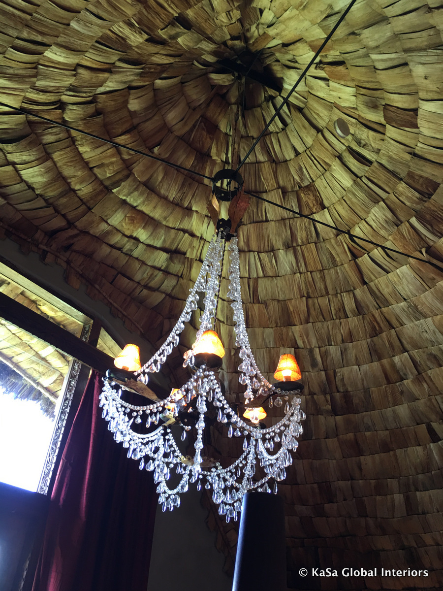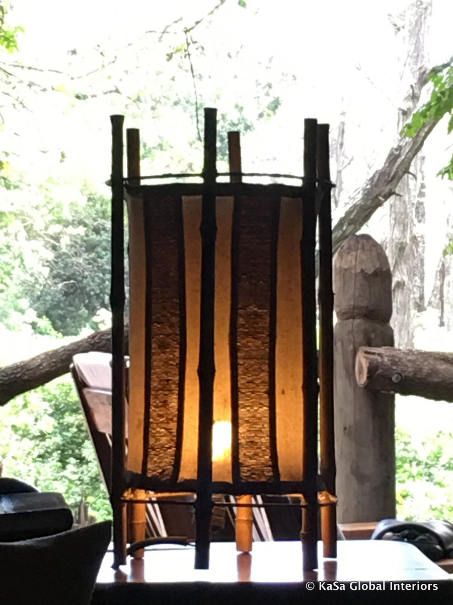 The African lodges we have visited were all well lit, but always with dimmed light. This kind of lighting reinforces the accomodating atmosphere of the space. The style of the lighting fixtures themselves ranged from simple to stunning and from flimsy to rustic.