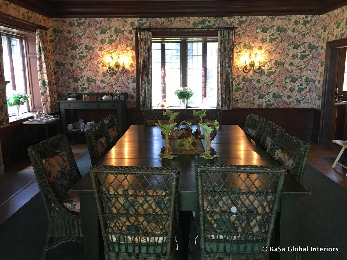IMG_4562-001 Published August 24, 2016 at 1200 × 900 in Old Tahoe – Taking a Page from the Style Guide of Yesterday’s Super Rich ← Previous Next → Dining room: the use of patterns is mainly reserved for window and wall treatments. Furnishings (apart from the seat cushions), flooring and ceiling are left plain