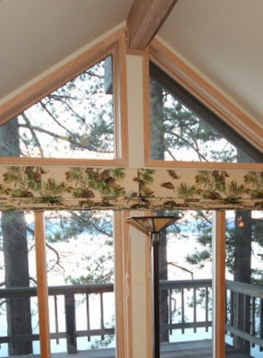 pine cone motives Published August 23, 2016 at 294 × 399 Pine cone patterns on heavy roman blinds, blocking out the light and distracting from the beautiful exterior views.